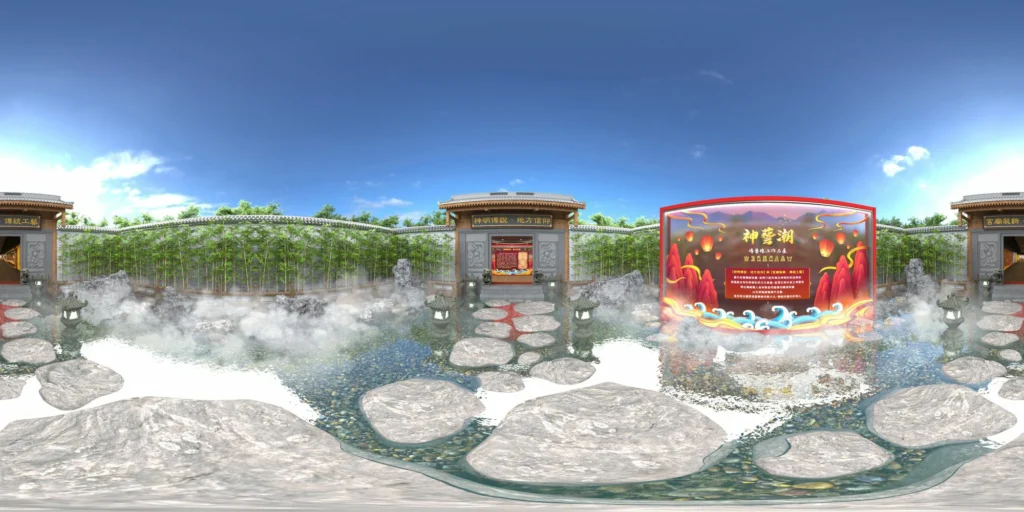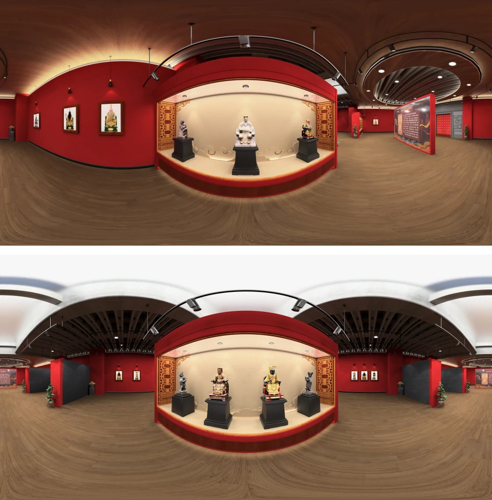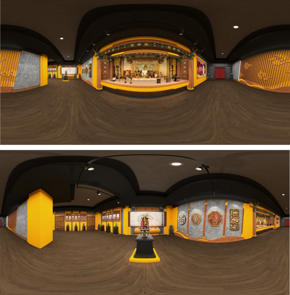 以線上VR虛擬實境為基礎平台,由真實的佈展架構形式與虛擬場景相互結合,將策展理念、展區規劃、展示單元和脈絡故事等元素融入其中,以3D場景的方式將空間視覺再現。